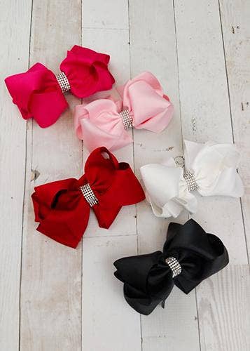 Oversized Rhinestone Center Knot Hair Bows: Red