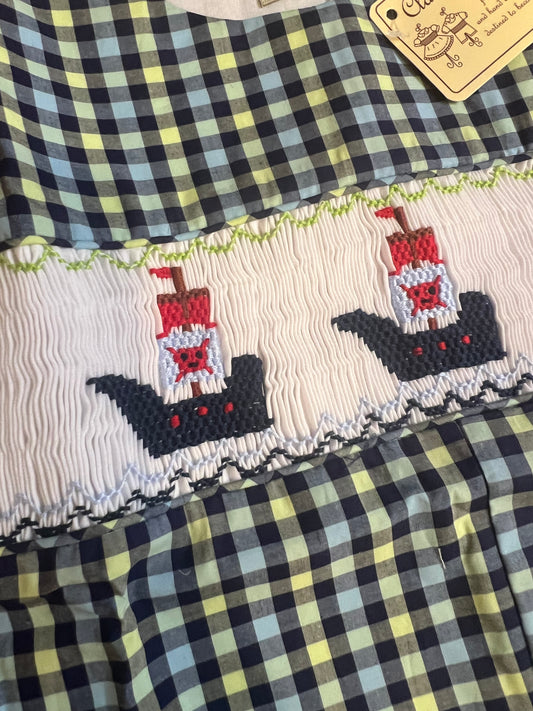 Classy Couture Smocked Pirate Ship Shortall