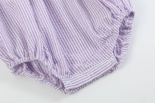 Lil Cactus - Light Purple Seersucker Bunny Smocked Romper: 6-12M