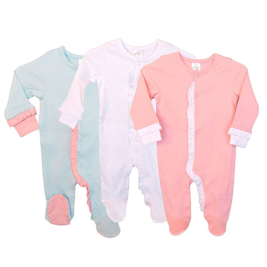 SK Blanks - Ruffle Footie: Pink w/White Ruffle / Newborn