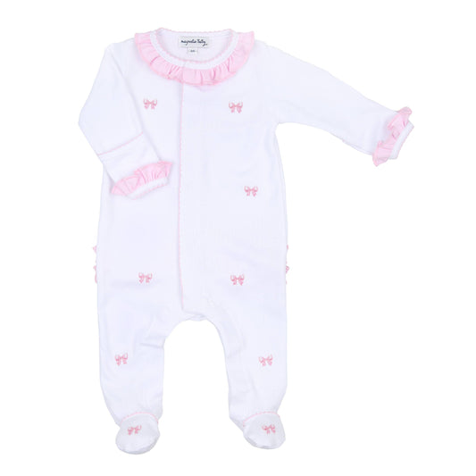 Magnolia Baby - Baby Bows Scattered Ruffle Footie: Pink / NB