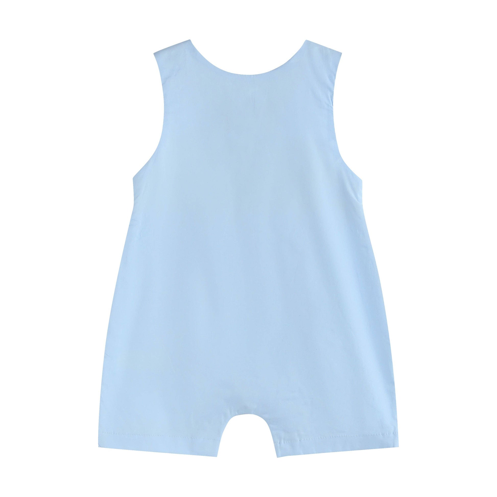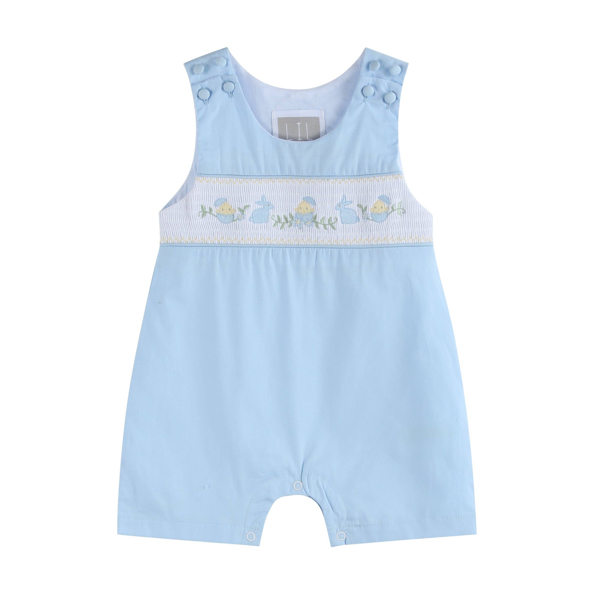 Lil Cactus - Light Blue Easter Smocked Shortalls: 3-6M