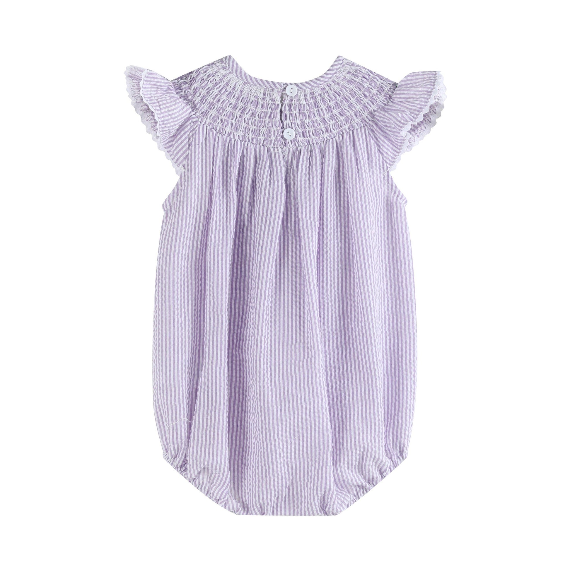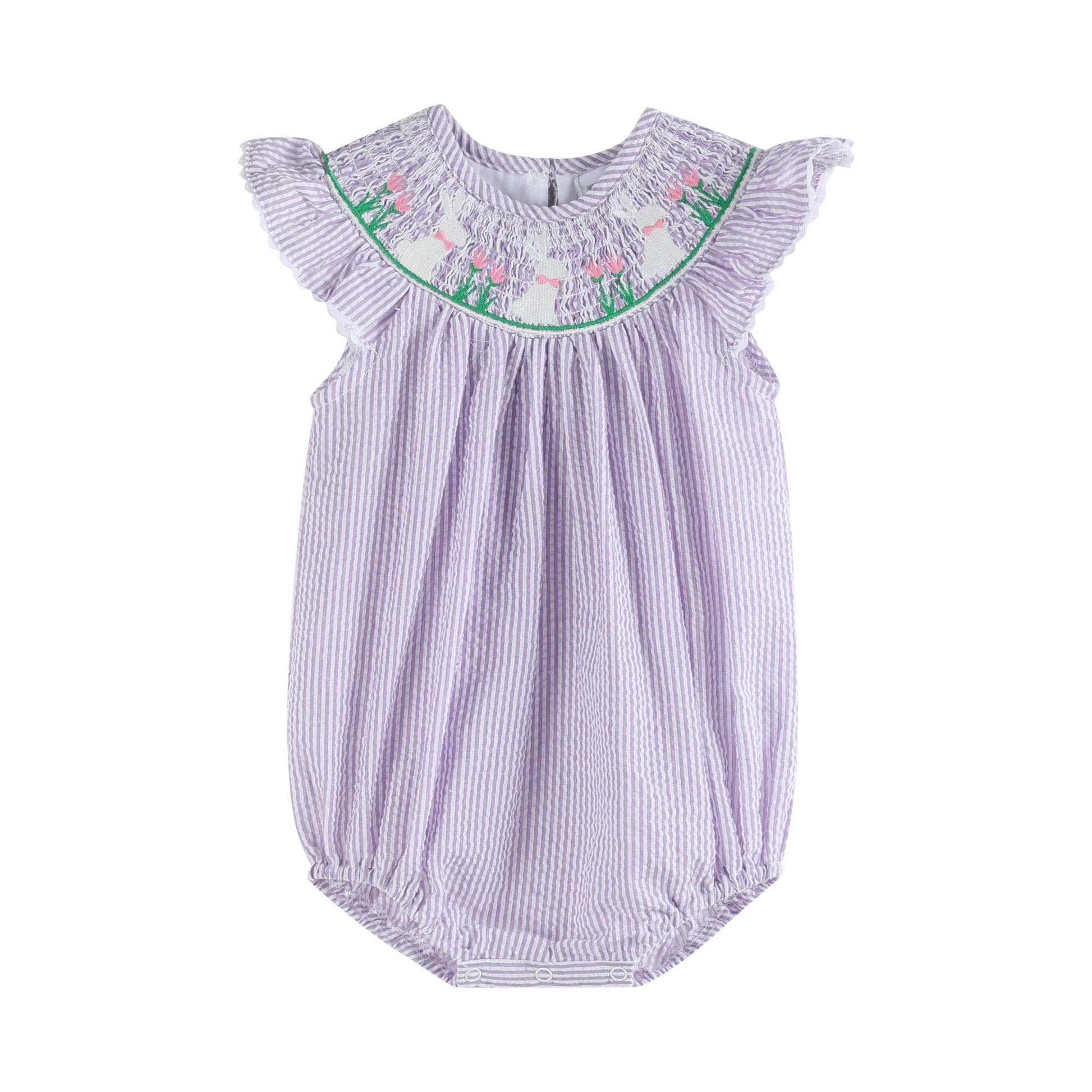 Lil Cactus - Light Purple Seersucker Bunny Smocked Romper: 6-12M