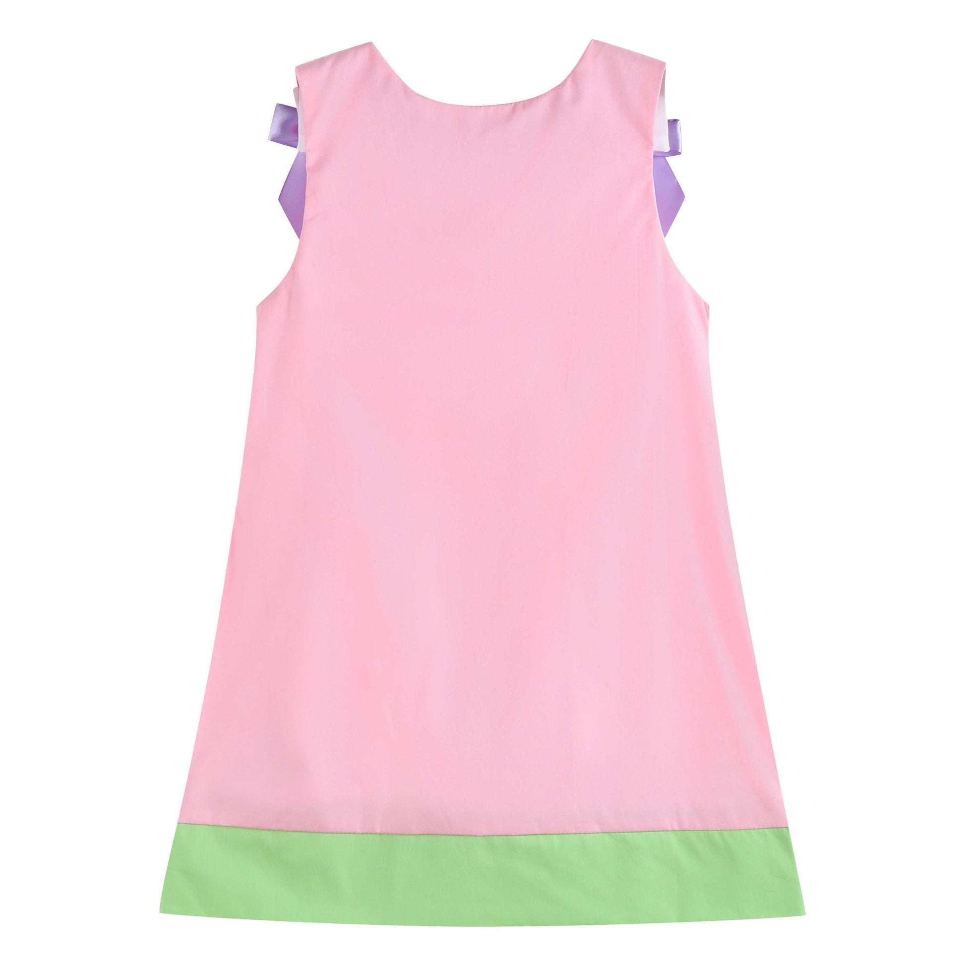 Hop into spring with the Pink Easter Bunny Garden Dress! This charming dress features playful bunny and easter appliques, adorned with cute bow details. Made with pretty pastel colors, it's perfect for the season. The perfect dress to add a little whimsy to your sweet bunnies closet.