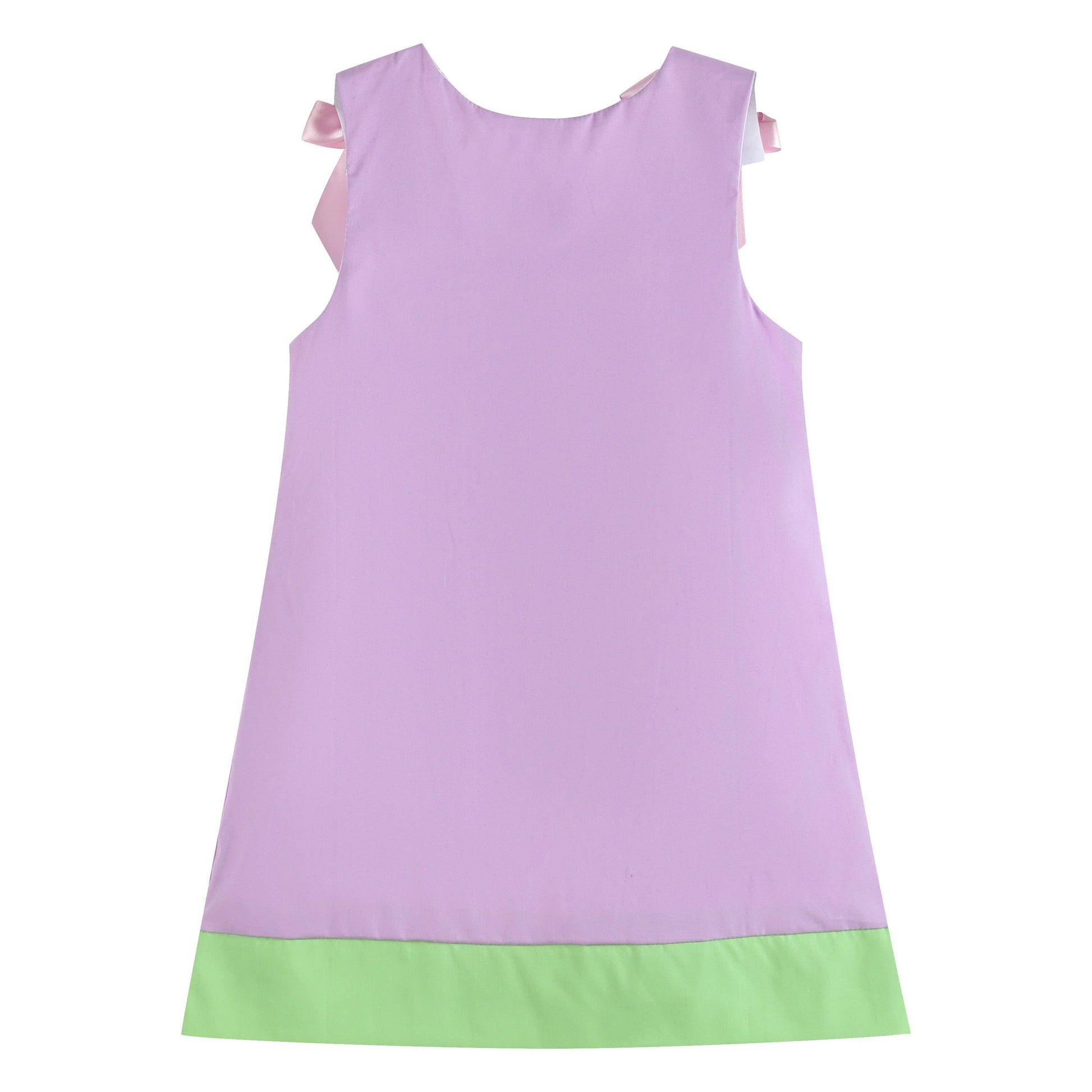 Hop into spring with the Purple Easter Bunny Garden Dress! This charming dress features playful bunny and easter appliques, adorned with cute bow details. Made with pretty pastel colors, it's perfect for the season. The perfect dress to add a little whimsy to your sweet bunnies closet.