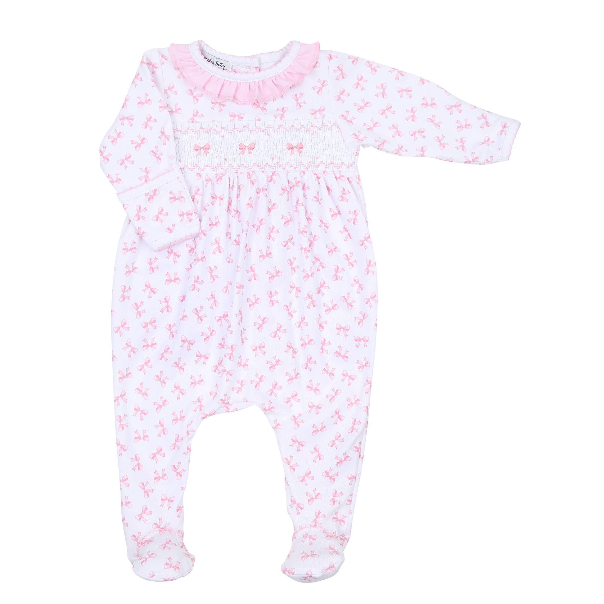 Magnolia Baby - Baby Bows Smocked Ruffle Footie: Pink / 3M/SM