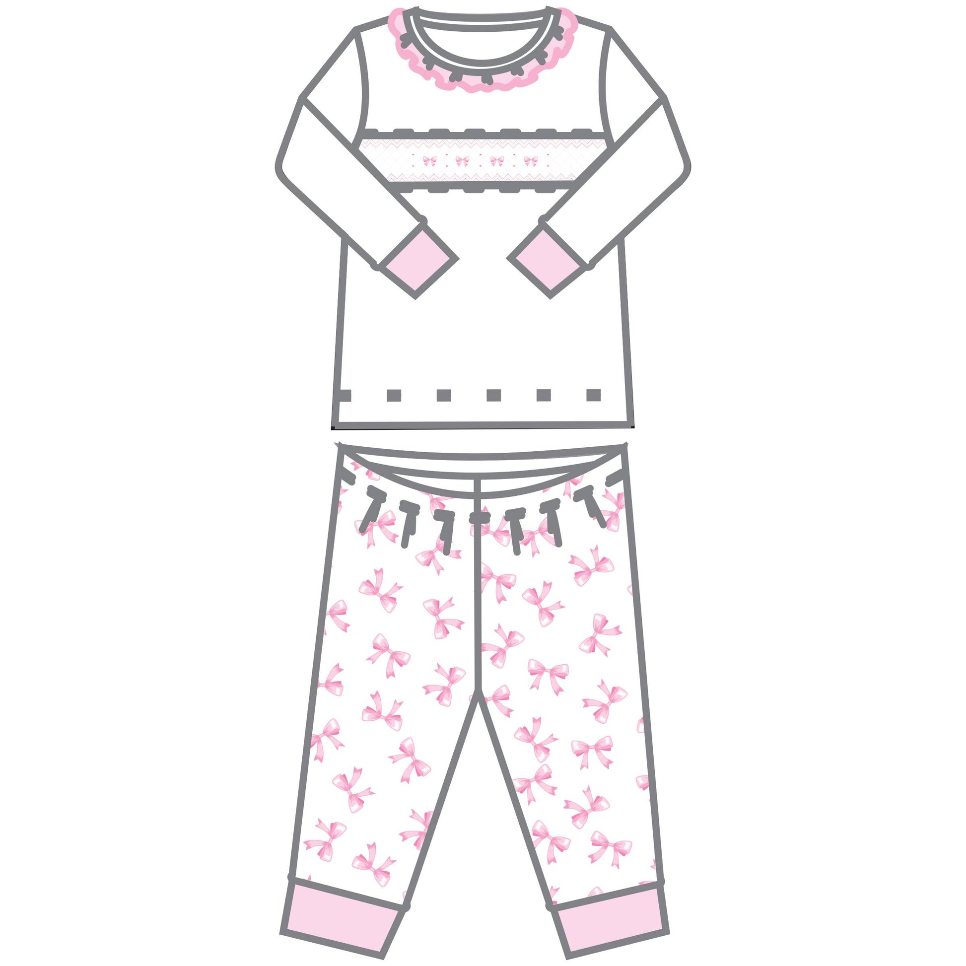 Magnolia Baby - Baby Bows Smocked Ruffle Long Pajamas: Pink / 4T
