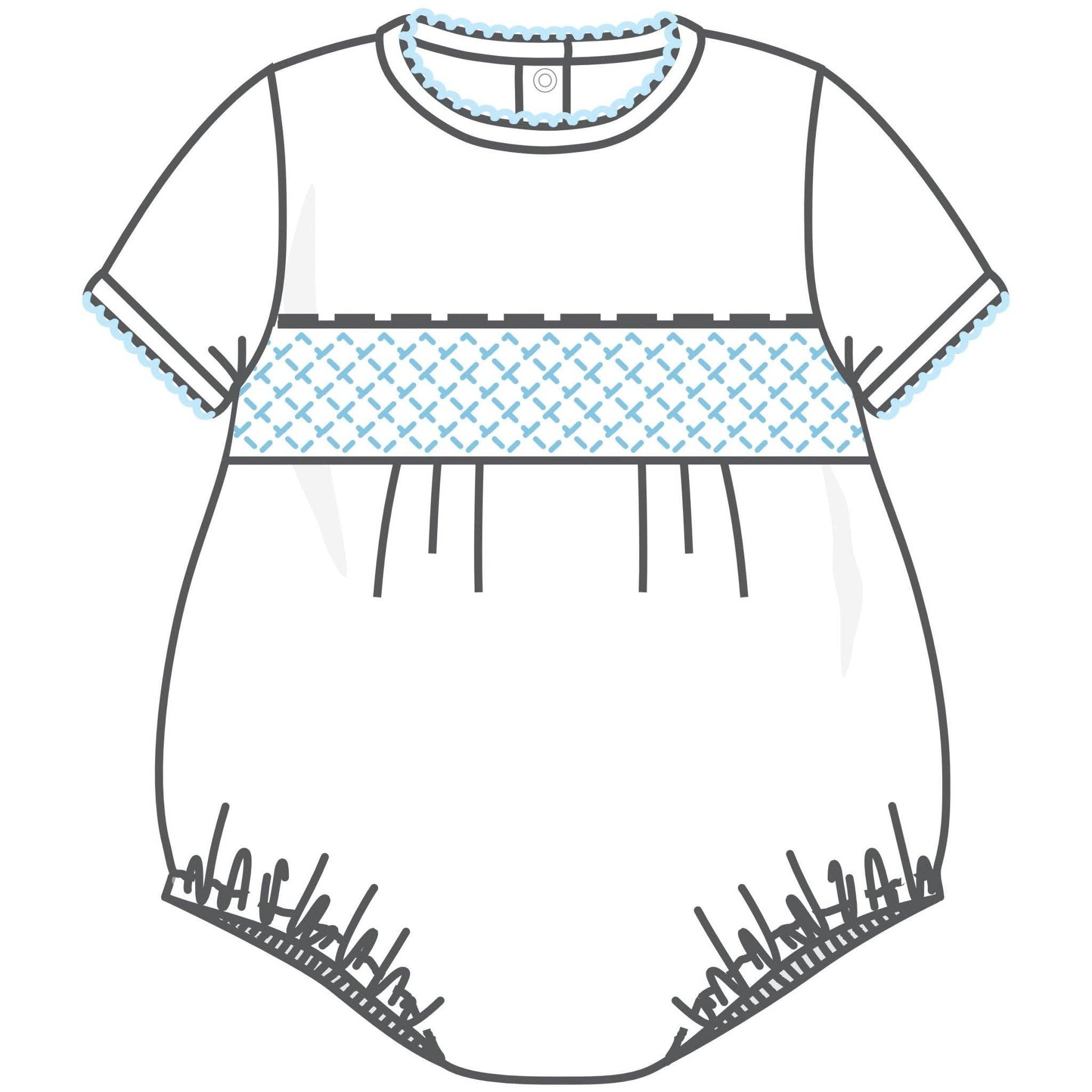 Magnolia Baby - Essentials Solid Smocked Bubble - White Blue: Newborn