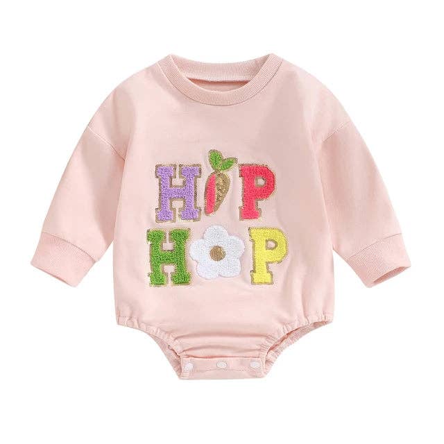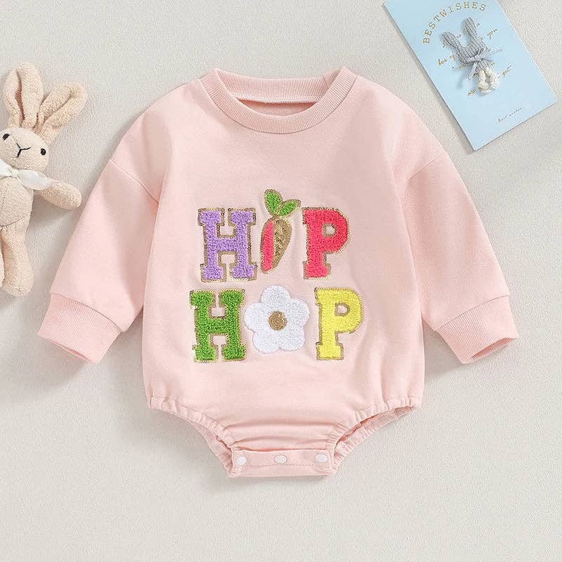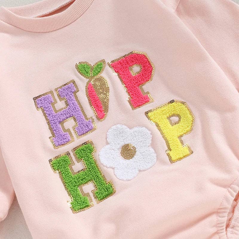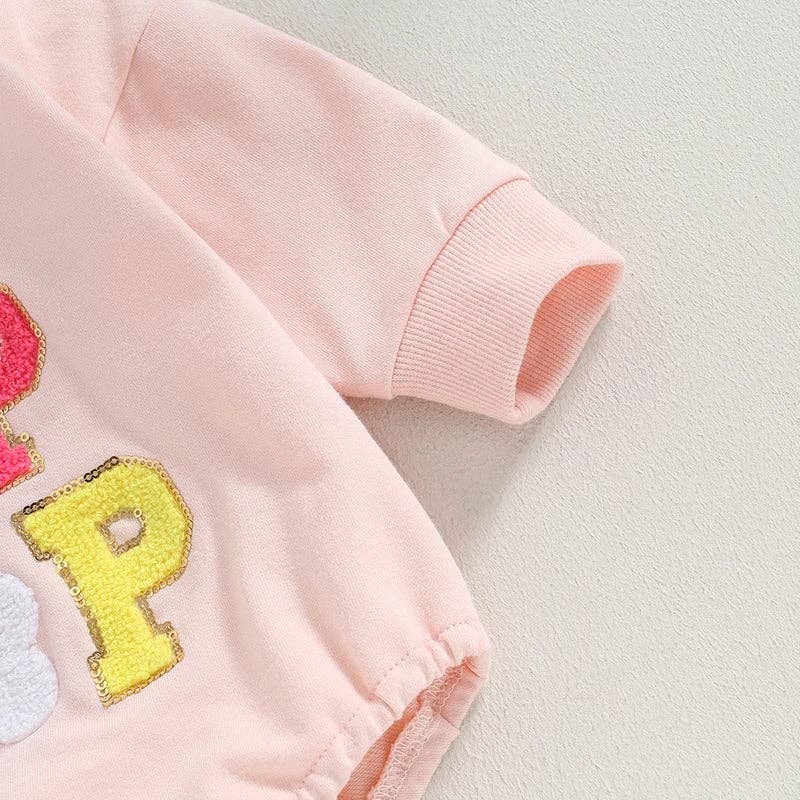 Sparkledots - Infant Girl's Easter Deluxe Onesie Romper - Hip Hop - Chenille Fuzzy Letters: As the photo show / 100